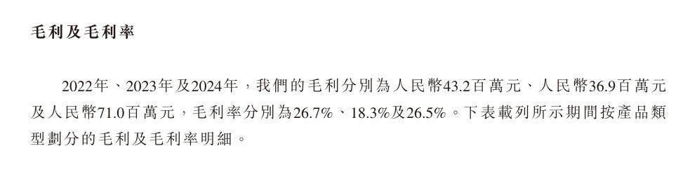 2022年、2023年、2024年,公司毛利率分別為26.7%、18.3%和26.5%。