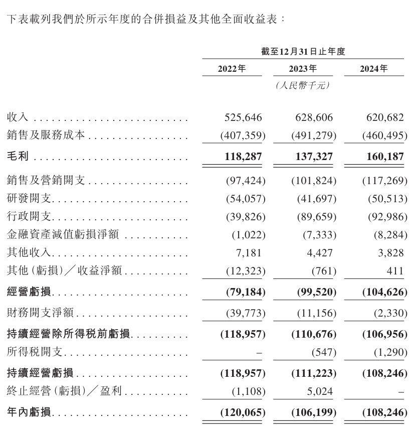 從經(jīng)營情況看,健康160三年來一直深陷虧損狀態(tài)。在2022年、2023年及2024年,公司營收分別為5.26億元、6.29億元、6.21億元;同期,公司分別產(chǎn)生年內(nèi)虧損為1.2億元、1.06億元及1.08億元。