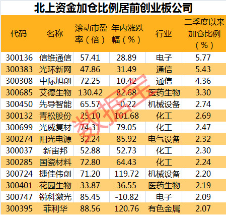 北上資金加倉(cāng)這些創(chuàng)業(yè)板股票 14股獲加倉(cāng)比例超2%