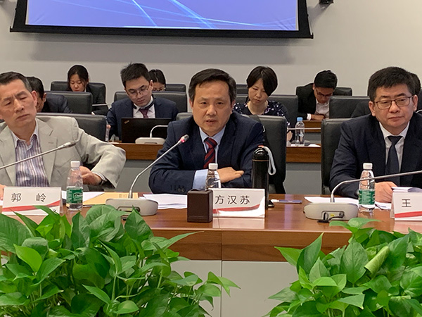 方漢蘇介紹本次資產(chǎn)重組業(yè)績承諾的合理性。 黃靈靈 攝