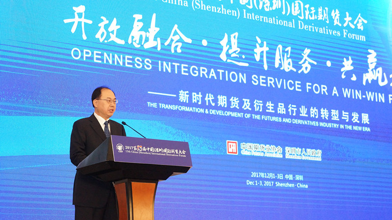 中國期貨業(yè)協(xié)會(huì)會(huì)長王明偉主持大會(huì)