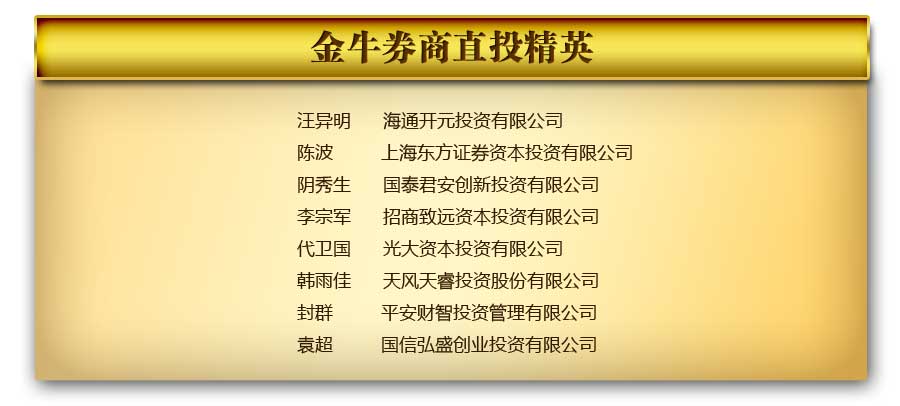 接下來我們要頒出個(gè)人獎(jiǎng)部分,金牛券商直投精英:
