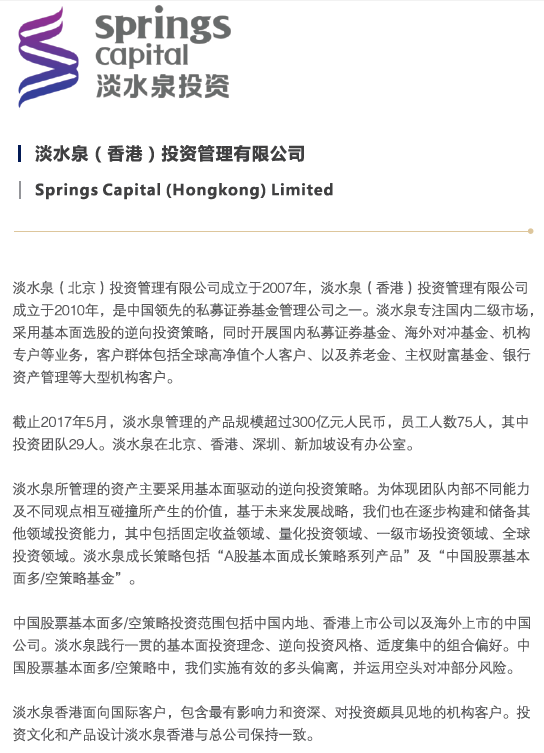 淡水泉(香港)投資管理有限公司(Springs Capital (Hong Kong) Limited)