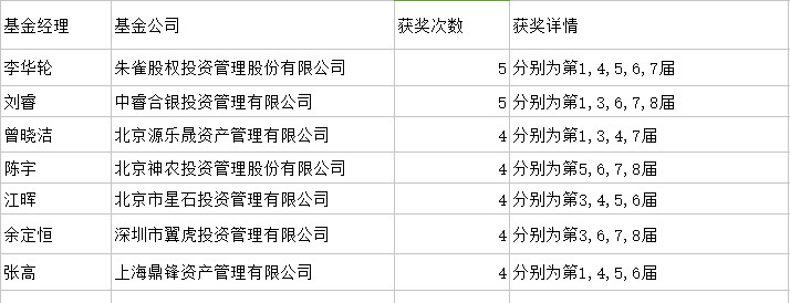 二、股票策略經(jīng)理獎獲獎次數(shù)前兩名