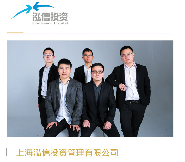 泓信投資,2014年2月成立,具備中國證券投資基金協(xié)會頒發(fā) 的私募基金管理人資格。累計管理規(guī)模逾百億,是國內(nèi)量化投 資領(lǐng)域管理規(guī)模最大的私募機構(gòu)之一。其量化模型經(jīng)受多國市 場考驗,業(yè)績優(yōu)異。核心投研人員均來自華爾街,擁有豐富的 海內(nèi)外市場實盤交易經(jīng)驗。已有債券、量化、衍生品、CTA、 宏觀研究、港股、金融工程等7個投研團隊!般薄疃鴱V 的水,“信”—誠信,泓信努力在投資、策略上做到深而廣, 并和投資者建立充分信任的關(guān)系。