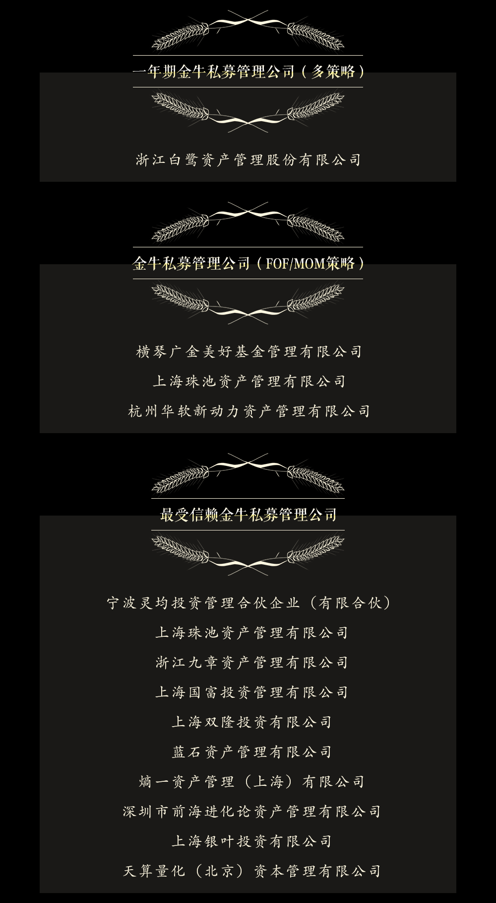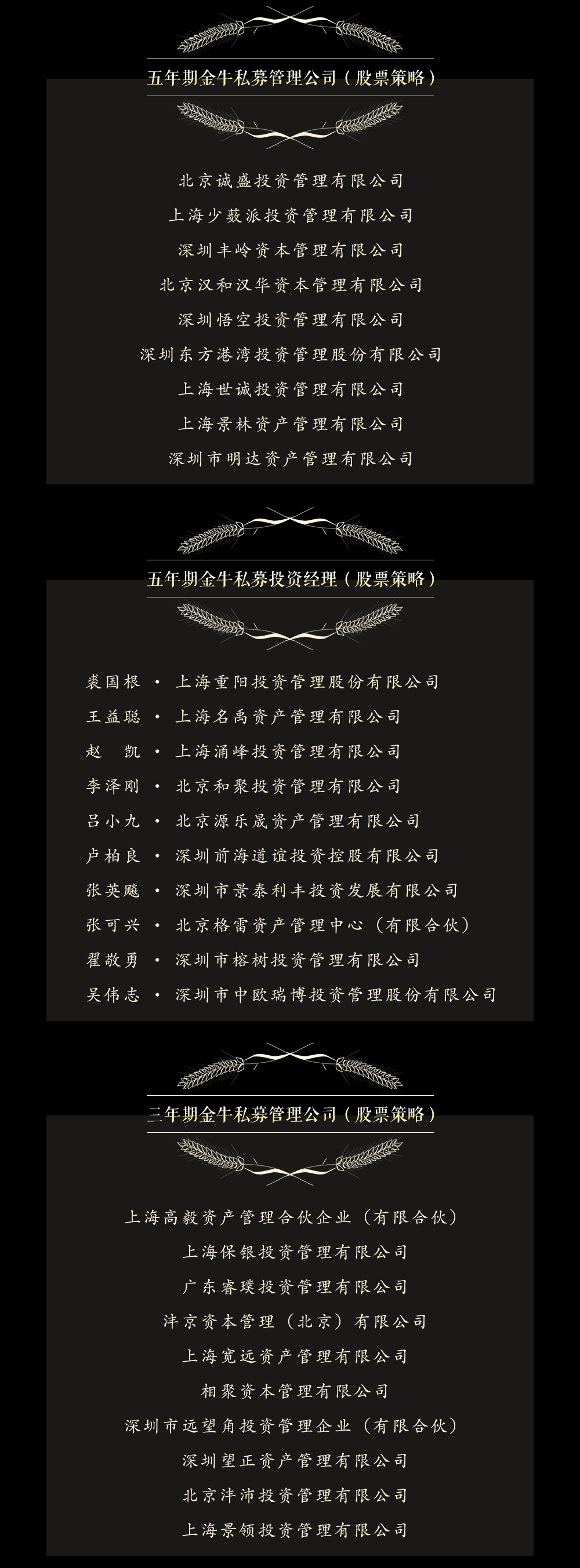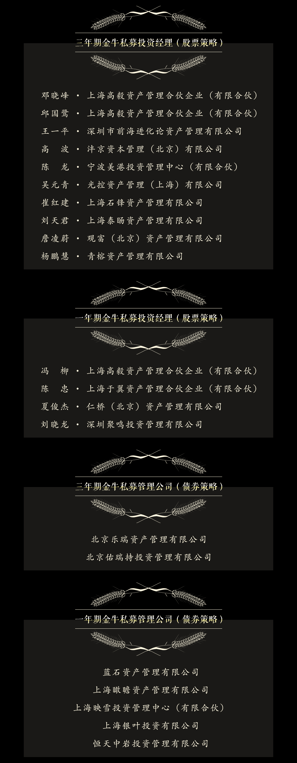 伴隨中國私募基金行業(yè)的發(fā)展壯大,中國證券報主辦的私募金牛獎評選迎來第十屆。作為中國私募基金行業(yè)快速發(fā)展的見證者和親歷者,私募金牛獎評選匯聚多家專業(yè)基金評價機構(gòu)的智慧,以定量指標為依據(jù),堅持公開、公正、公平原則,已成為引領(lǐng)中國私募基金行業(yè)健康發(fā)展的一面旗幟。