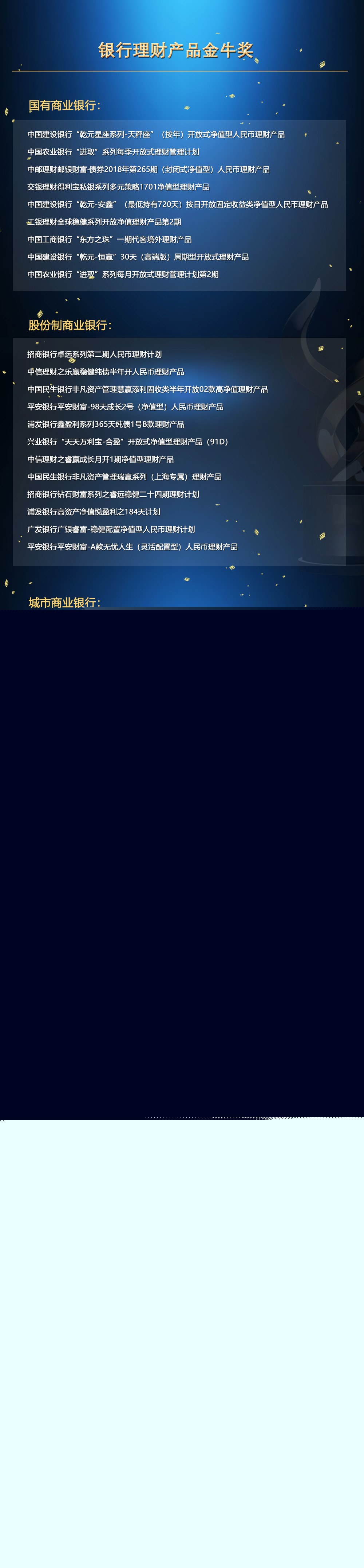 - 第一屆銀行業(yè)理財(cái)金牛獎(jiǎng)?lì)C獎(jiǎng)典禮在京舉辦