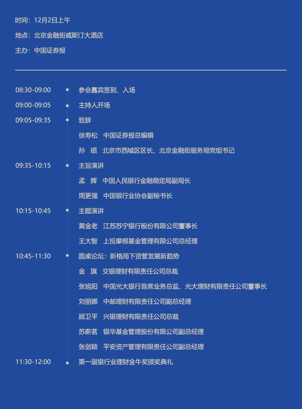由中國(guó)證券報(bào)主辦、北京金融街服務(wù)局特別支持的“錨定資管新航向 開(kāi)啟轉(zhuǎn)型新征程——2020中國(guó)證券報(bào)銀行業(yè)理財(cái)發(fā)展論壇暨第一屆中國(guó)證券報(bào)銀行業(yè)理財(cái)金牛獎(jiǎng)?lì)C獎(jiǎng)典禮”12月2日在北京舉行。在圓桌論壇環(huán)節(jié),多位資管行業(yè)高管?chē)@“新格局下資管發(fā)展新趨勢(shì)”主題,對(duì)于資管行業(yè)助力“雙循環(huán)”、布局養(yǎng)老金融等熱點(diǎn)問(wèn)題作了精彩紛呈的觀點(diǎn)交流和碰撞。