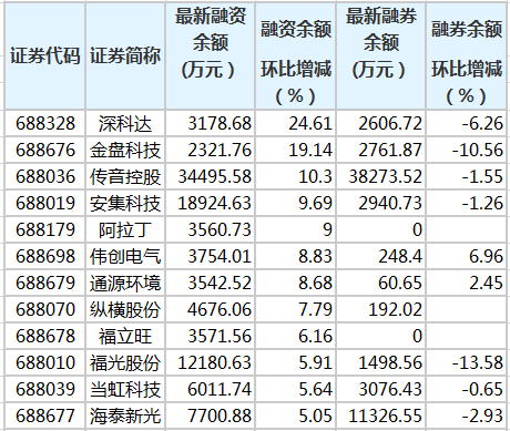 首頁>科創(chuàng)板 12只科創(chuàng)板股融資余額增幅超5% 證券時報網(wǎng)2021-03-12 09:41 證券時報?數(shù)據(jù)寶統(tǒng)計顯示,3月11日共有117只科創(chuàng)板個股融資余額環(huán)比增加。其中,12股融資余額增幅超過5%。融資余額增幅較大的有深科達、金盤科技、傳音控股等股。
