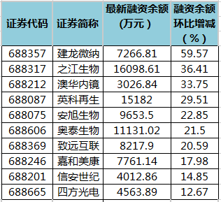 建龍微納等7只科創(chuàng)板股融資余額增幅超20%