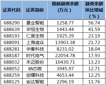 景業(yè)智能等11只科創(chuàng)板股融資余額增幅超10%