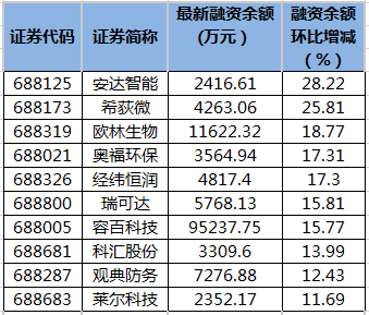 安達(dá)智能等12只科創(chuàng)板股融資余額增幅超10%