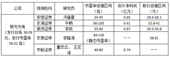 首批科創(chuàng)板股票估值盤點(diǎn):新光光電