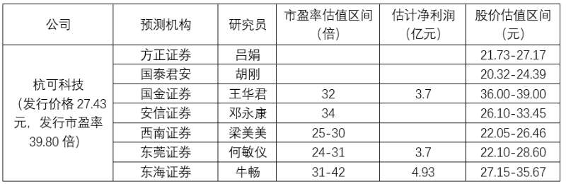 中證網(wǎng)訊(記者 戴安琪)7月22日,杭可科技將在科創(chuàng)板上市。此前,已有多家券商發(fā)布對(duì)其的估值。據(jù)國金證券王華君估計(jì),杭可科技2019年股價(jià)區(qū)間落在36.00元-39.00元,市盈率為32倍,市銷率為7倍。相較其他券商,該家給出的估值較高。