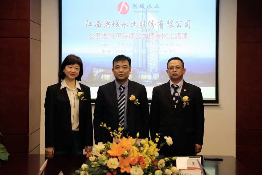 洪城水業(yè)公開發(fā)行可轉(zhuǎn)換公司債券網(wǎng)上路演嘉賓合影