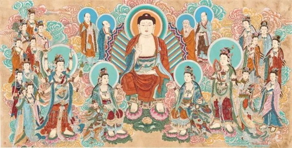 薛海濤等比例繪制的唐代壁畫作品《說法圖》