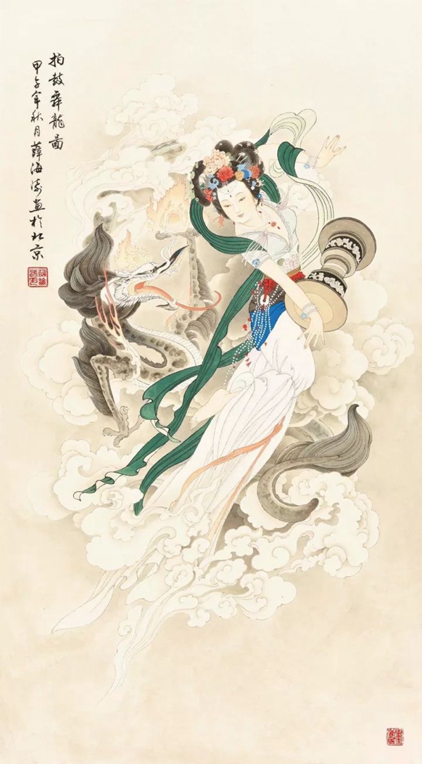 薛海濤創(chuàng)作的中國工筆畫敦煌飛天系列