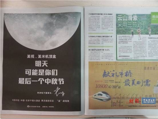 時(shí)至今日,同洲電子董事長(zhǎng)袁明又再次拋出引爆性的一封公開信。此次公開信的版式仍然沿用了整版的大手筆版幅,并且言辭更加犀利。且在中秋節(jié)前一天,將矛頭直指國(guó)內(nèi)智能電視盒子諸多主流知名品牌。直言將是舊式機(jī)頂盒的最后一個(gè)中秋節(jié),并發(fā)出邀請(qǐng),邀請(qǐng)大家一起在9月23日的發(fā)布會(huì)上見(jiàn)證“盒”戰(zhàn)結(jié)束。