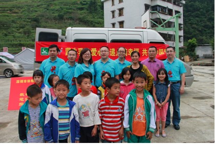 。ū乇虫(zhèn)小學(xué)鄧細(xì)芳老師和同學(xué)們與蒙牛愛(ài)心團(tuán)隊(duì)合影)