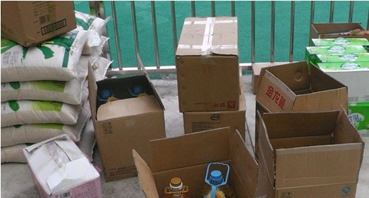 (圖為:購買的米、油、面條、零食、學習用品等)