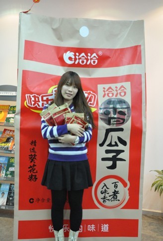 2013年12月5日報道,日前洽洽食品官方微博的競猜活動,廣州、上海獲獎?wù)呔崖淠,北京微博達人梁小姐獲獎,贏得“史上最大袋瓜子”,據(jù)了解,目前就職于美團網(wǎng),活動主辦方已在當(dāng)天下午把獎品送到所在單位。