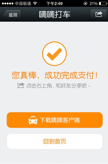 傳嘀嘀打車獲1億美金融資 微信打車月底上線
