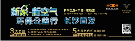 屆時(shí),全國100000個(gè)活動(dòng)參與家庭除了能免費(fèi)獲得專業(yè)的室內(nèi)PM2.5及甲醛檢測外,還可免費(fèi)獲得裝修前、中、后期具體空氣污染解決方案,其力度之大、范圍之廣,使之成為我國史上規(guī)模最大的一次公益全民測“霾”行動(dòng)。