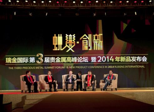 在“蛻變與創(chuàng)新”——瑞金國(guó)際第三屆貴金屬高峰論壇暨2014年新品發(fā)布會(huì)上,貴金屬洞察有限公司總裁菲利普、招商銀行原行長(zhǎng)馬蔚華、招商證券(香港)有限公司董事總經(jīng)理張強(qiáng)生、著名經(jīng)濟(jì)學(xué)家劉軍洛、深圳市黃金珠寶首飾行業(yè)協(xié)會(huì)會(huì)長(zhǎng)楊紹武以及中國(guó)黃金報(bào)社社長(zhǎng)李清飛等五位資深專家對(duì)當(dāng)前黃金市場(chǎng)情況分別從黃金性及金融性方面闡述了各自的見(jiàn)解,實(shí)現(xiàn)了貴金屬與金融領(lǐng)域的深度交流與碰撞,為中國(guó)黃金珠寶行業(yè)向金融領(lǐng)域深度發(fā)展注入強(qiáng)大力量。另外,瑞金國(guó)際2014新品“中華福禮”也于當(dāng)天盛裝亮相。