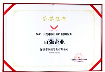 巨能光電喜獲“2013中國(guó)LED照明應(yīng)用百?gòu)?qiáng)企業(yè)”