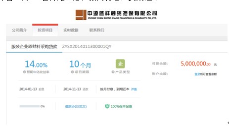 同時,該項目由中源盛祥融資擔(dān)保有限公司進(jìn)行借款擔(dān)保,據(jù)了解,中源盛祥融資擔(dān)保有限公司成立于2009年,注冊金額5億元,在行業(yè)內(nèi)擁有風(fēng)險控制能力和誠信代償記錄的良好口碑,與多家銀行及金融機(jī)構(gòu)建立有互信合作關(guān)系,其對于還款的第三方擔(dān)保,是項目投資人權(quán)益的“雙重保險”。