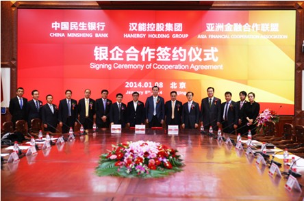 今日,漢能控股集團(tuán)(以下簡(jiǎn)稱“漢能”)與中國民生銀行股份有限公司(以下簡(jiǎn)稱“民生銀行”)和亞洲金融合作聯(lián)盟在京簽署《銀企合作協(xié)議》,建立全面戰(zhàn)略合作伙伴關(guān)系。民生銀行和亞洲金融合作聯(lián)盟意向性在未來3年為漢能提供總額不低于200億元的各類融資支持,助推漢能在光伏、水電等領(lǐng)域的戰(zhàn)略發(fā)展。