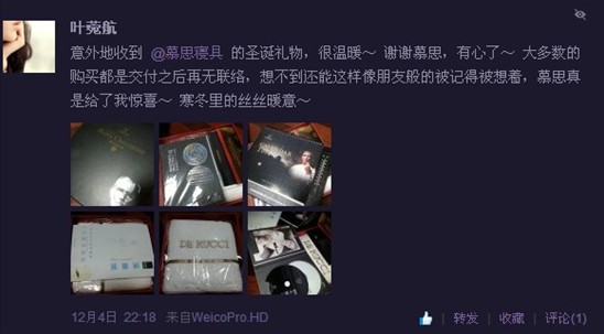 微博大V“豈有慈理”在自己的微博上說的:“光憑每年所有節(jié)日都會無間斷給老客戶送禮品的這份執(zhí)著,我相信你們一定會做得更好!我繼續(xù)支持你們的!”