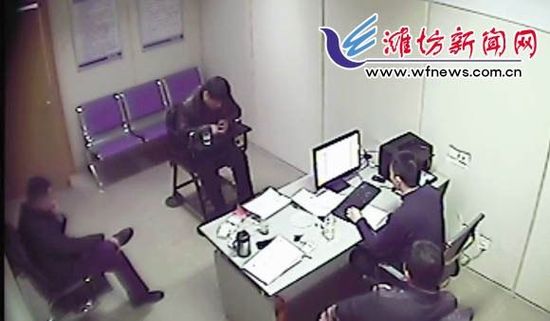 犯罪嫌疑人劉某正在接受民警訊問