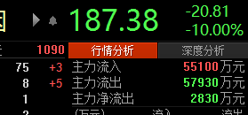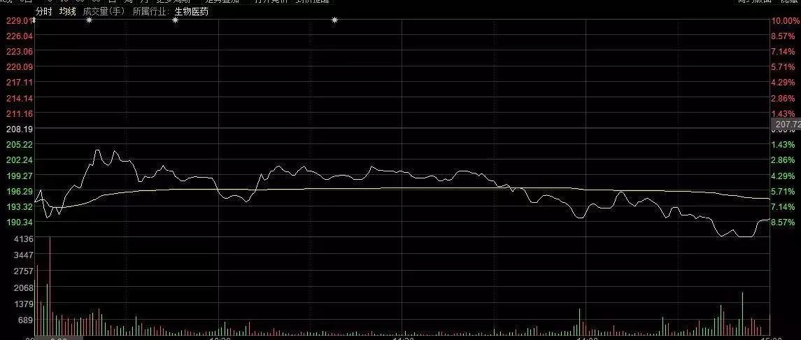 跌幅一度達(dá)10%,最后以190.81元收盤,跌幅為8.35%。