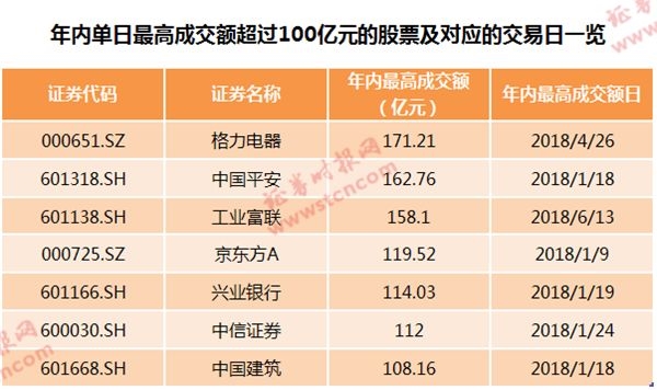 據(jù)統(tǒng)計(jì),年內(nèi)單日成交金額曾超過百億元的僅有中國平安、京東方A、格力電器、興業(yè)銀行、中信證券等極少數(shù)個(gè)股。
