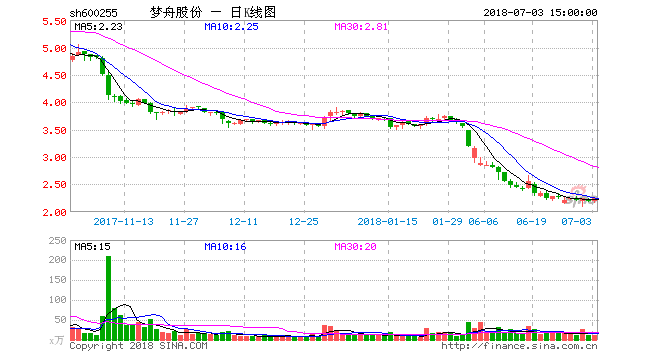 相較增持承諾,船山文化的高質(zhì)押股權(quán)比例形勢(shì)則更為嚴(yán)峻。根據(jù)公司2017年年報(bào),船山文化持有夢(mèng)舟股份1.77億股,占總股本的10%,已全部處于質(zhì)押狀態(tài)。今年以來(lái),夢(mèng)舟股份股價(jià)一直處于下跌狀態(tài),截至7月3日收盤(pán),年內(nèi)跌幅已超40%。