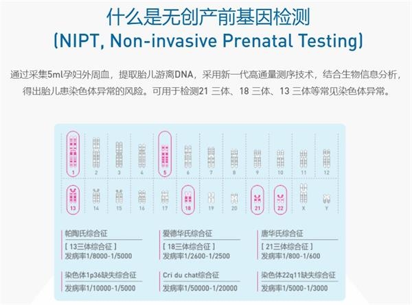 ▲截自華大醫(yī)學官網(wǎng)“無創(chuàng)產(chǎn)前基因檢測”相關(guān)介紹頁面