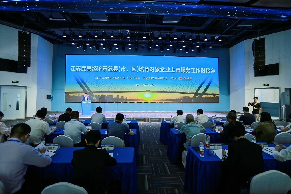 6月9日,由江蘇省發(fā)改委、江蘇證監(jiān)局、江蘇省地方金融監(jiān)管局主辦,中國證券報協(xié)辦的江蘇民營經(jīng)濟高質(zhì)量發(fā)展示范縣(市、區(qū))企業(yè)上市服務(wù)工作對接會在南京金魚嘴基金路演中心舉行。三十余家來自全省各地的民營企業(yè)家與券商機構(gòu)“面對面”交流,探討企業(yè)上市路徑,拓寬民營經(jīng)濟融資渠道。
