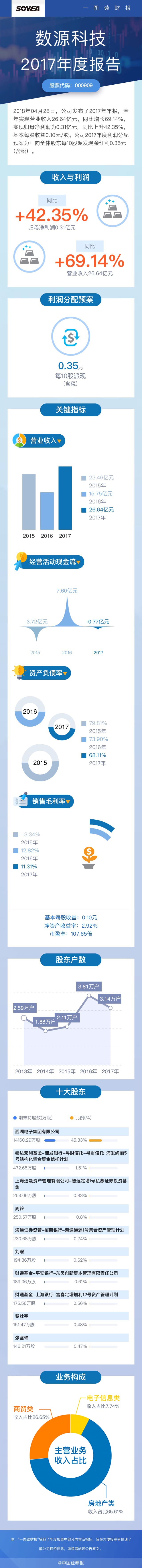 一圖讀財(cái)報(bào):數(shù)源科技2017年凈利同比增長42.35%