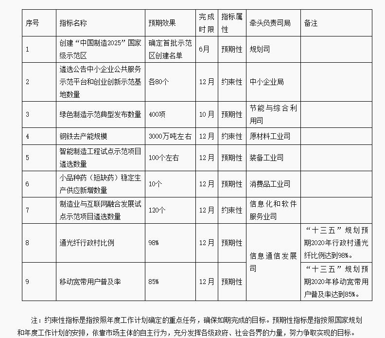 中證網(wǎng)訊 (記者 李先飛)工業(yè)和信息化部4月20印發(fā)《2018年有關(guān)重點(diǎn)工作關(guān)鍵業(yè)績(jī)指標(biāo)》。其中指出創(chuàng)建“中國(guó)制造2025”國(guó)家級(jí)示范區(qū)”,確定首批示范區(qū)創(chuàng)建名單,預(yù)期完成時(shí)限為2018年6月。智能制造工程試點(diǎn)示范項(xiàng)目遴選數(shù)量100個(gè)左右,預(yù)期完成時(shí)限為2018年12月。