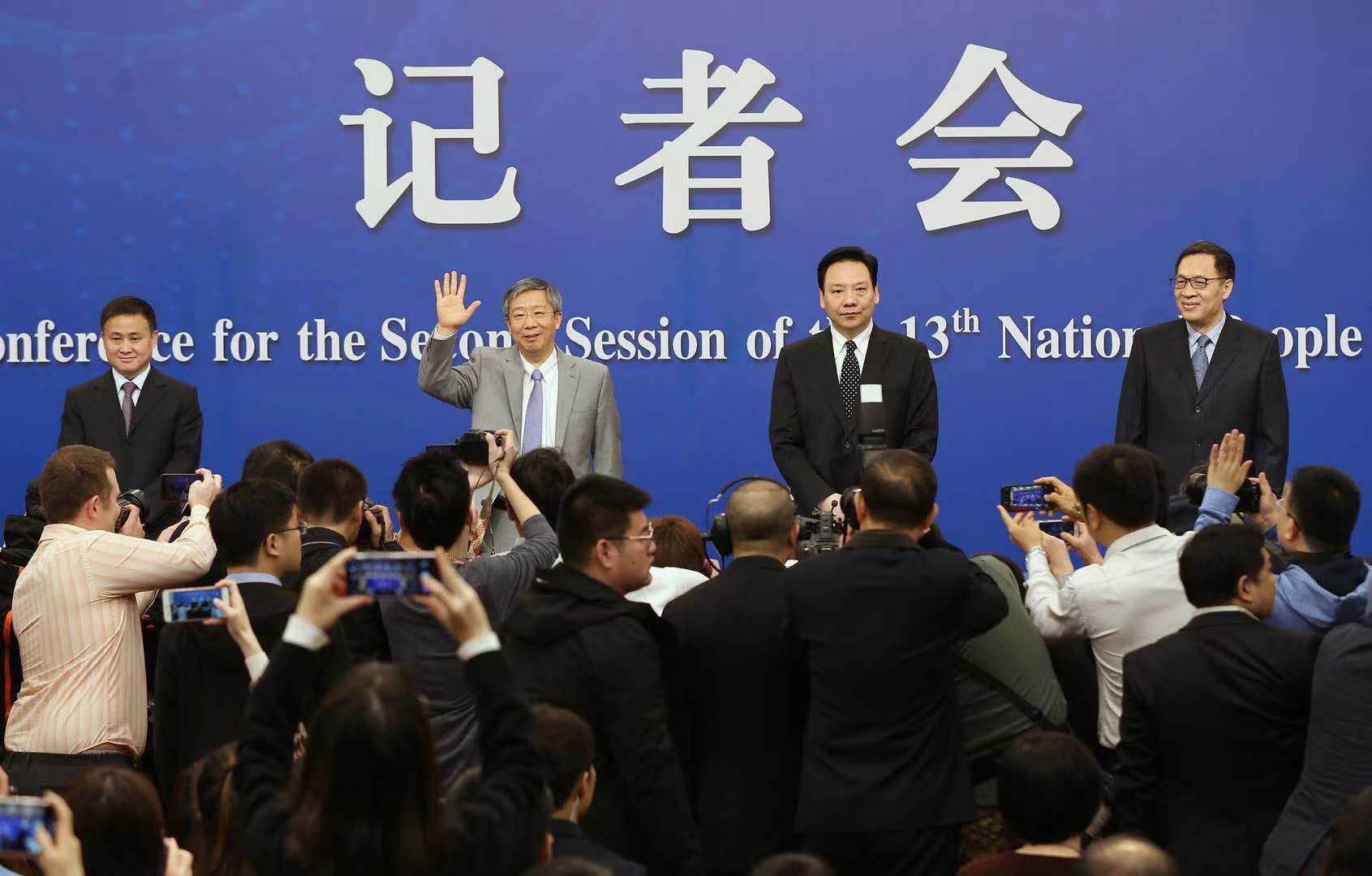 十三屆全國(guó)人大二次會(huì)議新聞中心3月10日舉行記者會(huì),中國(guó)人民銀行行長(zhǎng)易綱,副行長(zhǎng)陳雨露,副行長(zhǎng)、國(guó)家外匯管理局局長(zhǎng)潘功勝,副行長(zhǎng)范一飛就“金融改革與發(fā)展”相關(guān)問(wèn)題回答中外記者提問(wèn)。