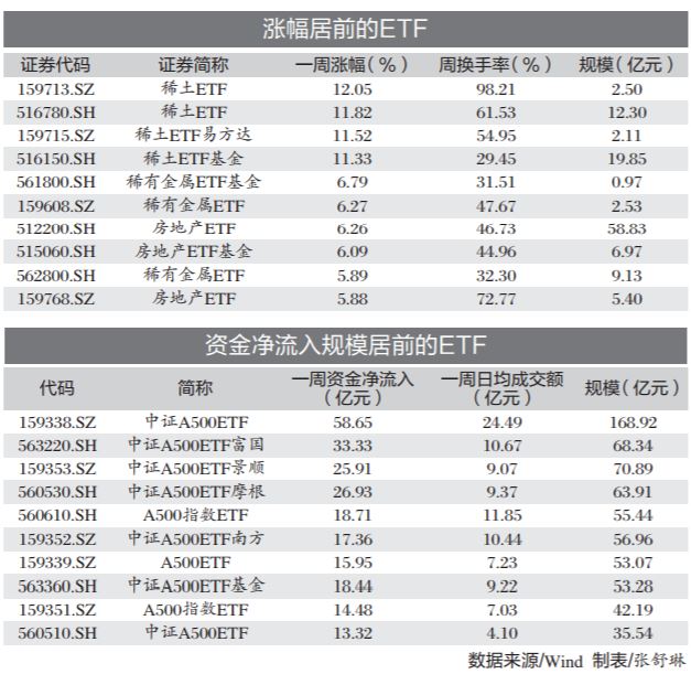 上周市場(chǎng)風(fēng)格轉(zhuǎn)向,一改此前科技成長(zhǎng)板塊占優(yōu)的局面,低位股補(bǔ)漲,高位股普遍出現(xiàn)調(diào)整。具體來(lái)看,富國(guó)基金、華泰柏瑞基金、易方達(dá)基金、嘉實(shí)基金旗下四只中證稀土產(chǎn)業(yè)ETF漲幅均超過(guò)10%。鋼鐵、房地產(chǎn)、建筑材料、糧食產(chǎn)品等ETF也普遍上漲。前一周漲幅居前的光伏、新能源、科創(chuàng)板相關(guān)ETF表現(xiàn)不盡如人意,多只回調(diào)幅度超過(guò)6%。