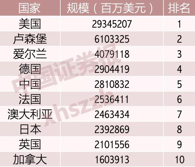 受監(jiān)管開放式基金全球排名前十來源:根據(jù)ICI數(shù)據(jù)制表