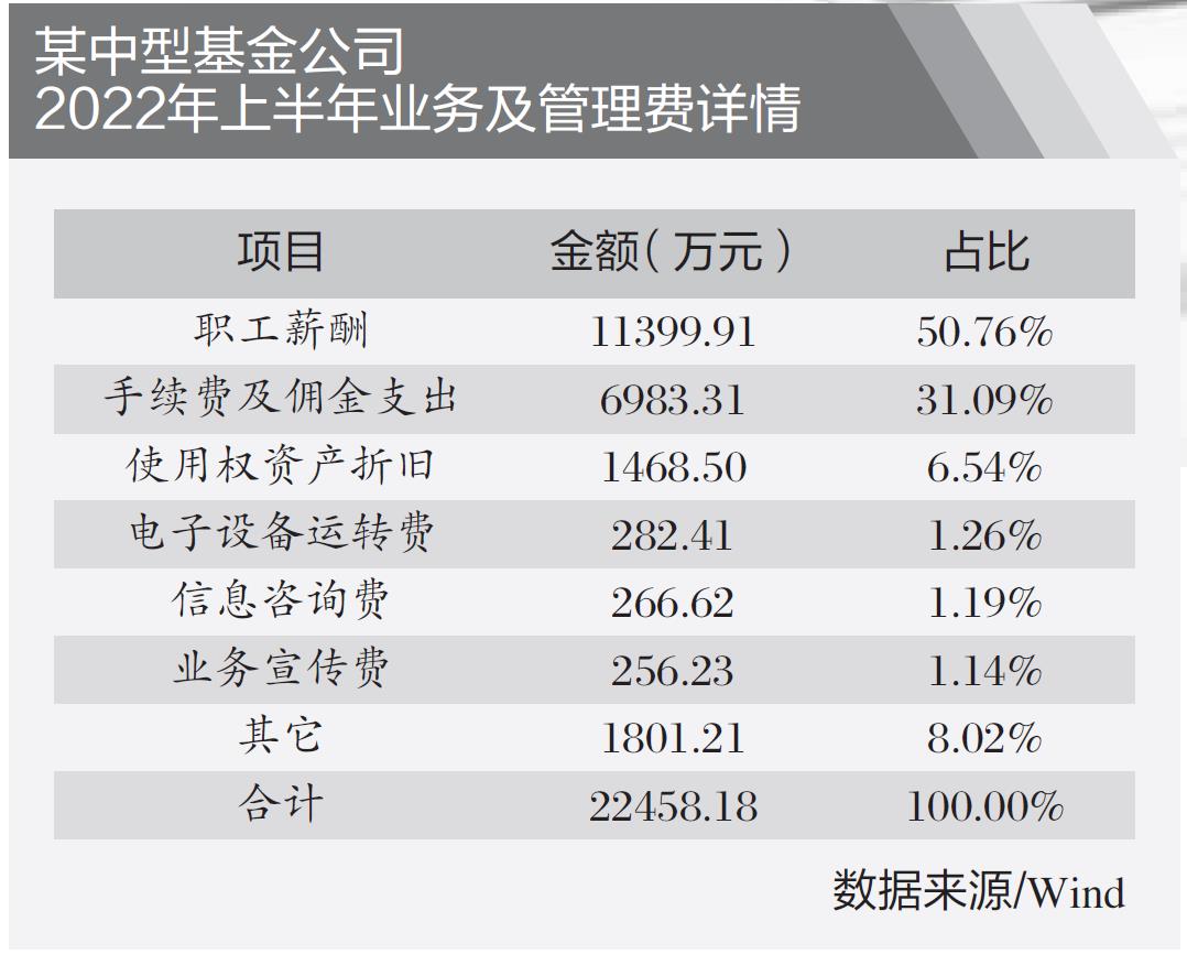據(jù)一位中型基金公司人士介紹,其所在公司的營(yíng)業(yè)成本主要由三部分構(gòu)成:一是團(tuán)隊(duì)建設(shè)和人才引進(jìn)。二是系統(tǒng)建設(shè),他介紹,目前使用的系統(tǒng)有恒生和萬得等,根據(jù)業(yè)務(wù)發(fā)展也會(huì)自己開發(fā)或者采購(gòu)業(yè)務(wù)模塊!跋到y(tǒng)的費(fèi)用會(huì)隨著規(guī)模的上升而提升,畢竟要支撐業(yè)務(wù)發(fā)展。比如,去年北交所開市,基金公司投資北交所的標(biāo)的也要跟北交所有一些單獨(dú)的硬件測(cè)試!比浅R(guī)支出,如產(chǎn)品營(yíng)銷宣傳、辦公室租金、運(yùn)行費(fèi)用等,例如,產(chǎn)品成立或召開持有人大會(huì),需要律師事務(wù)所出具報(bào)告,這些細(xì)枝末節(jié)的支出,均是成本的一部分。