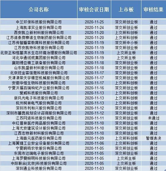 其中,除了沖擊創(chuàng)業(yè)板的江蘇網(wǎng)進科技股份有限公司未獲通過,擬在科創(chuàng)板上市的上海皓元醫(yī)藥股份有限公司上會被暫緩表決,另外28家公司成功“轉(zhuǎn)板”。