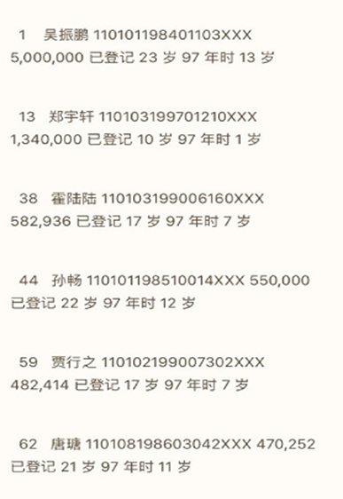 北京銀行在2007年9月上市前夕擁有多名未成年以及年輕的持股自然人,引發(fā)公眾質(zhì)疑。持股量最大的自然人就是吳振鵬,持有500萬股。北京銀行招股書中公布的身份證號顯示,吳振鵬出生于1984年,當(dāng)時僅23歲。而北京銀行2014年三季度財報顯示,其境內(nèi)自然人持股數(shù)已為零。