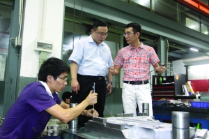 圖為建行工作人員深入泉州一家數(shù)控型小微企業(yè)了解技術(shù)創(chuàng)新和產(chǎn)業(yè)升級(jí)情況