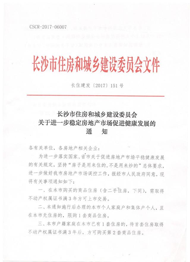 繼“318”“520”調(diào)控政策后,時(shí)隔4個(gè)月,長(zhǎng)沙樓市調(diào)控再度升級(jí)。為落實(shí)中央提出的“房子是用來住的,不是用來炒的”的戰(zhàn)略定位,持續(xù)保持長(zhǎng)沙房?jī)r(jià)在全國(guó)的比較優(yōu)勢(shì),并將其轉(zhuǎn)變成創(chuàng)新創(chuàng)業(yè)的競(jìng)爭(zhēng)優(yōu)勢(shì)、振興實(shí)體經(jīng)濟(jì)的持續(xù)動(dòng)力、提升民生福祉的顯著標(biāo)志,長(zhǎng)沙市住建委今日凌晨發(fā)布《關(guān)于進(jìn)一步穩(wěn)定房地產(chǎn)市場(chǎng)促進(jìn)健康發(fā)展的通知》(以下簡(jiǎn)稱“通知”)。