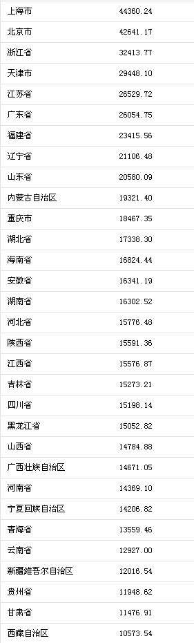 31省區(qū)市前三季度哪的人掙得最多? 上海北京超4萬