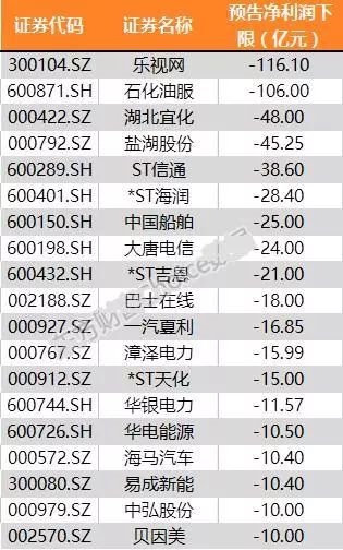 業(yè)績(jī)預(yù)告虧損超過(guò)10億的上市公司